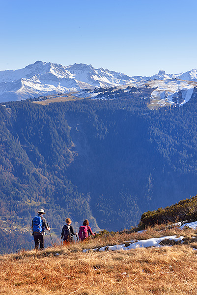 Descente face aux massifs du Beaufortain et du Mont-Blanc