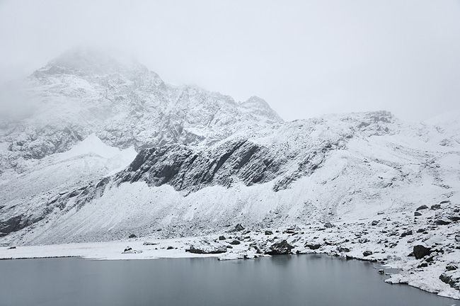 Portfolio | Montagne | Col et refuge de Vallonpierre | Neige au petit matin au lac de Vallonpierre