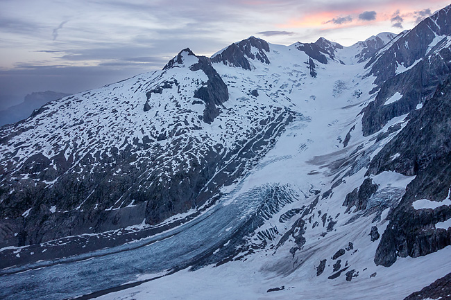 Portfolio | Montagne | Dôme des Glaciers par l'arête des Lanchettes | Premières lueurs sur le glacier de Tré-la-Tête