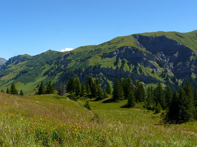 Le Mont Blanc commence à pointer le bout de son nez derrière les alpages