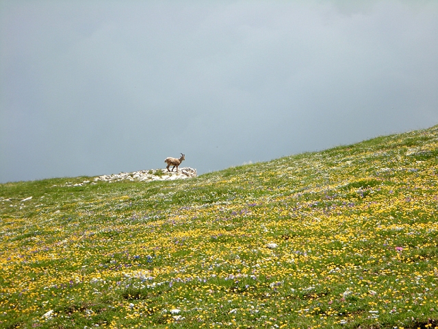Portfolio | Montagne | Grand Veymont - Plateaux du Vercors | Un bouquetin pas farouche au milieu des fleurs
