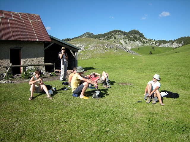 Portfolio | Montagne | Grand Veymont - Plateaux du Vercors | La troupe à la cabane de Pré Peyret