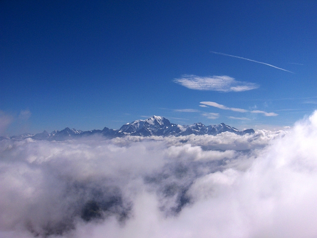 Au sommet, vue sur le Mont Blanc dans les nuages
