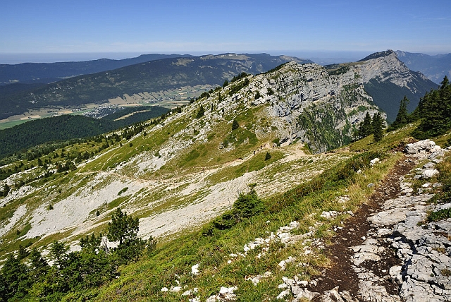 Descente vers un col sans nom, le Moucherotte au fond