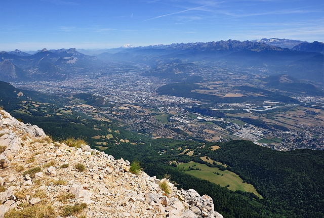 Au sommet du Pic Saint Michel, vue sur Grenoble, le Mont Blanc au fond