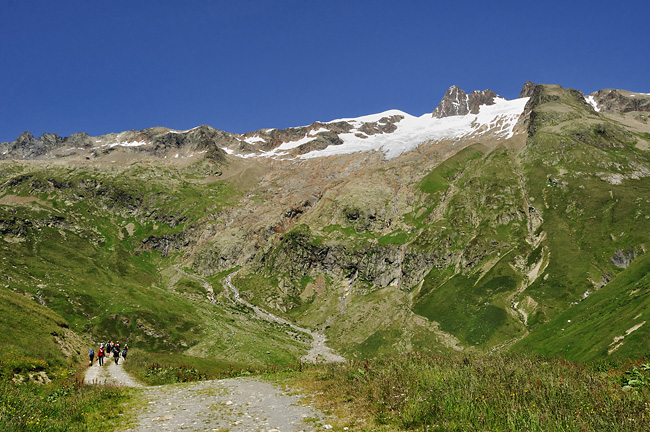 Portfolio | Montagne | Vallée des Glaciers - De la Tête Nord des Fours au refuge Robert Blanc | Randonneurs face au glacier des Glaciers
