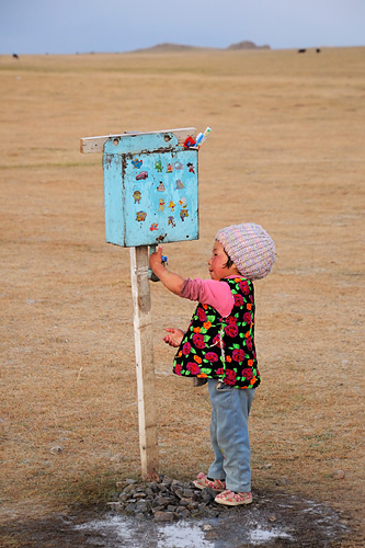 Portfolio | Kirghizstan | Lac Song-Köl | "Je sais que je n'ai pas le droit de jouer avec l'eau mais je vais quand même faire une petite bêtise..."