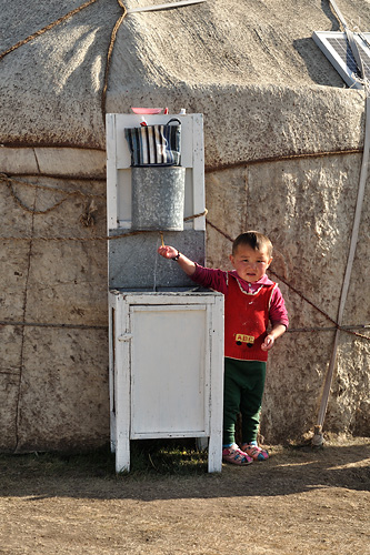 Portfolio | Kirghizstan | Lac Song-Köl | "Salle de bain" typique des jailoos (photo B.Q.)